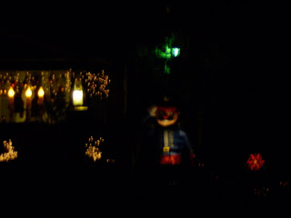 The man’s yard is always beautiful. The plantings are gorgeous and well tended. We just got back from a walk and he has spent today putting up his Christmas decorations. It looks just like a TOYLAND! Awesome and wonderful and something a child would definitely want to stop and investigate. But beware! I fear it’s like the witch’s cottage in Hansel and Gretel and that the outcome of such investigation might come to no good.