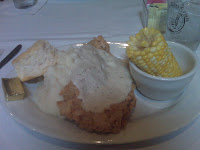 David has been eating CFS ever since I have known him, over 30 years now. I refer to it as his yellow meal. CFS, gravy, mashed potatoes, and corn comprise the typical yellow fare I have seen him eat. Today included two other yellow items: a biscuit and butter. Yum.