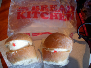 Me, I have a sweet tooth and so I got my personal favorites. Cream buns. Nom! These are basically dinner rolls filled with sweet whipped cream.